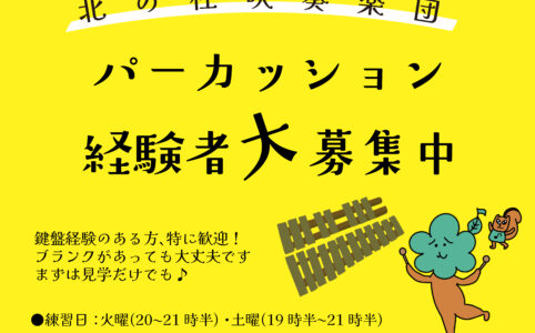 お知らせ パーカッション経験者大募集中! Posted on 4月 15, 2026 by bach-tp / 0件のコメント ただいまパーカッションのメンバーを募集しております。経験者、特に鍵盤楽器を演奏されていた方大歓迎です。最近演奏からは遠ざかっていてブランクのある方も大丈夫です。楽しい仲間になって合奏を楽しまれてはいかがですか? ◯活動の...